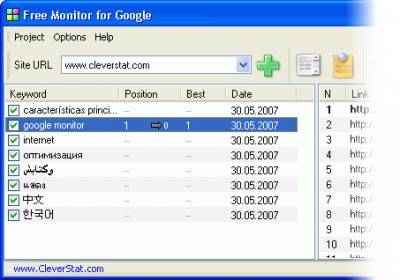 Free Monitor for Google - это бесплатная программа, разработанная для веб-мастеров и SEO-специалистов. С ней в сможете быстро проверить позицию вашего сайта в выдаче поисковой системы Гугл (Google) по всем популярным запросам. Free Monitor for Google формирует запрос к Google и показывает вам положение вашего сайта в выдаче по вашим целевым ключевым словам (кивордам). Такж вы можете отслеживать ваших конурентов. Программа хранит статистику запросов и позволяет загрузить сразу множество ключевых слов.