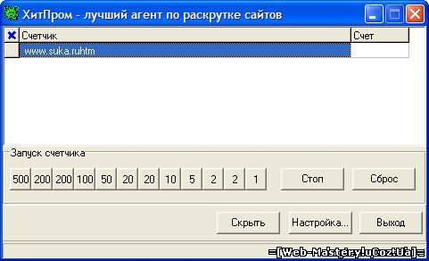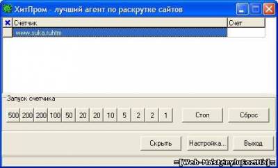 HitProm - 1000 посетителей в сутки на ваш сайт HitProm - метод, способный сделать Вашу страничку или сайт весьма известными и популярными. Все знаменитые сервера Рунета начинали путь к известности с использования этого или такого же способа. Предположим, что Вы уже создали замечательную страницу, зарегистрировали ее в поисковых машинах, подключились к баннерообменным системам, написали приглашения в гостевые книги и телеконференции. Хотя все советы мудрых гуру выполнены, вряд ли Вы остались довольны количеством посетителей. До знаменитых, по-настоящему посещаемых сайтов Вам, по-прежнему, как до Альфа Центавра. Гуру кивают головой: мол мы трудились, и все у нас получилось. Они никогда не расскажут всей правды. А рецепт первого шага к популярности состоит из одного слова - НАКРУТКА. С помощью накрутки Вы можете привлекать до 1000 визиторов в сутки. Дальнейшее продвижение зависит от того, удастся ли Вам привлечь рекламодателей, правильно вложить заработанные деньги в дальнейшую раскрутку и т.д. Есть и другое применение нашему накрутчику. Всем хорошо известно, что в Сети масса спонсоров, которые платят за привлечение клиентов на их сайт. Вы просто размещаете баннер такого спонсора у себя на сайте, а затем при помощи нашей программы накручиваете нужное количество посещений. Доход - просто астрономический! Инструкция по использования и накрутки сайта внутри!!! Информация о программе: Название: HitProm Язык Интерфейса: Русский Платформа: Windows ME/NT/2000/XP/Vista Размер: 1,2 mb Лекарство: Не требуется
