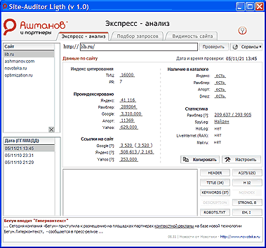 При помощи утилиты Site-Auditor вы сможете быстро собрать данные, необходимые для оценки видимости сайта в поисковых системах Рунета.